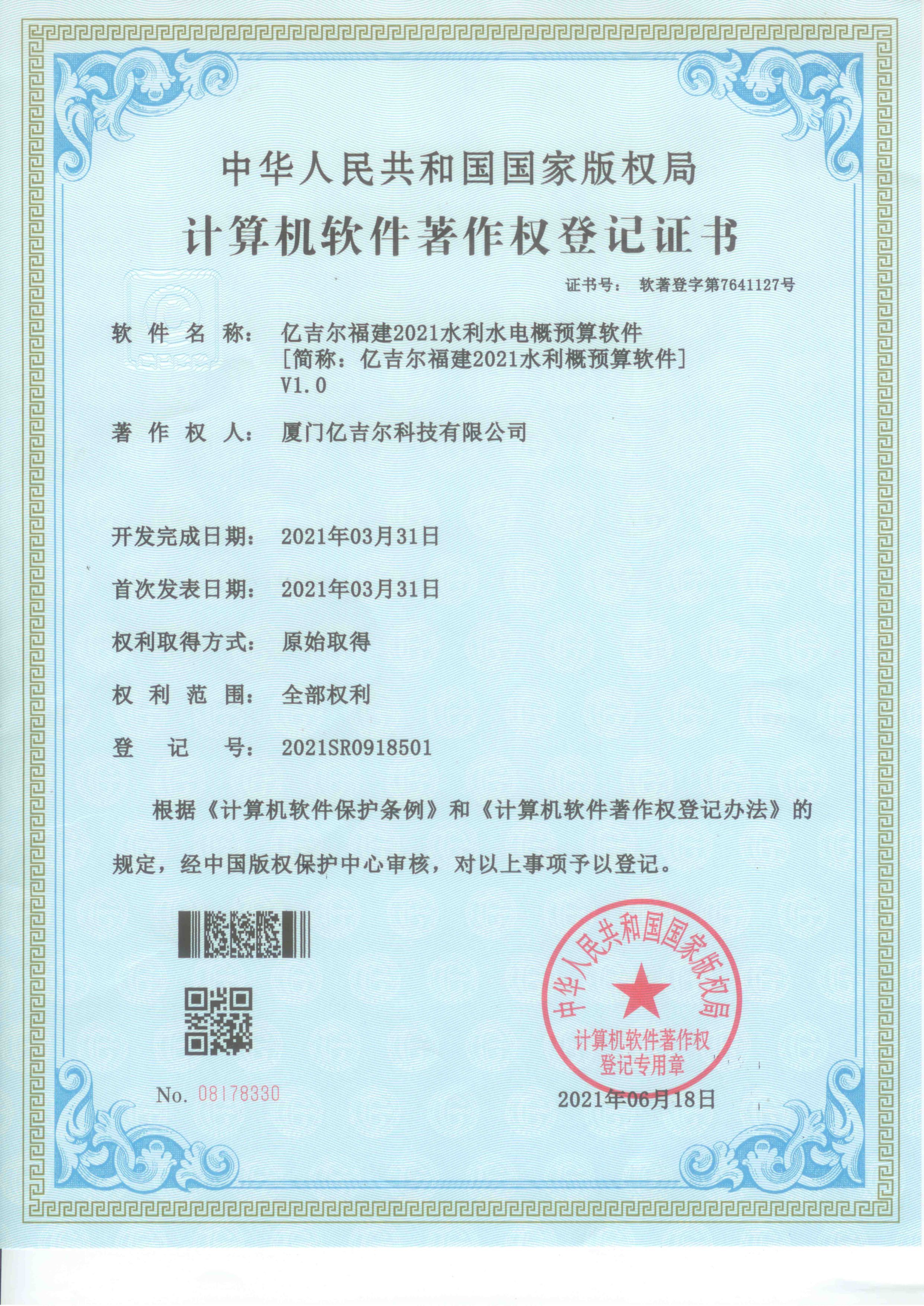 億吉爾福建2021水利水電概預算軟件著作權(quán)證書 發(fā)布日期:2023年11月22日 瀏覽次數(shù):2129 關(guān)鍵字: 公司 1/1億吉爾福建2021水利水電概預算軟件著作權(quán)證書
